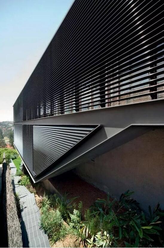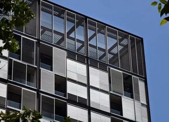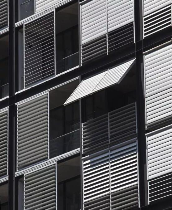但是因為鋁制百葉窗突出的耐候性,因此更適用于室外遮陽。在日本就有一座用鋁板做外遮陽的建筑。為減少夏季輻射熱量,該建筑的兩側(cè)沒有設(shè)計開口。