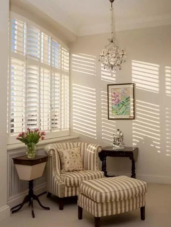 一般來說,小房間適用暗裝的百葉窗簾,大房間則適用明裝的百葉簾。